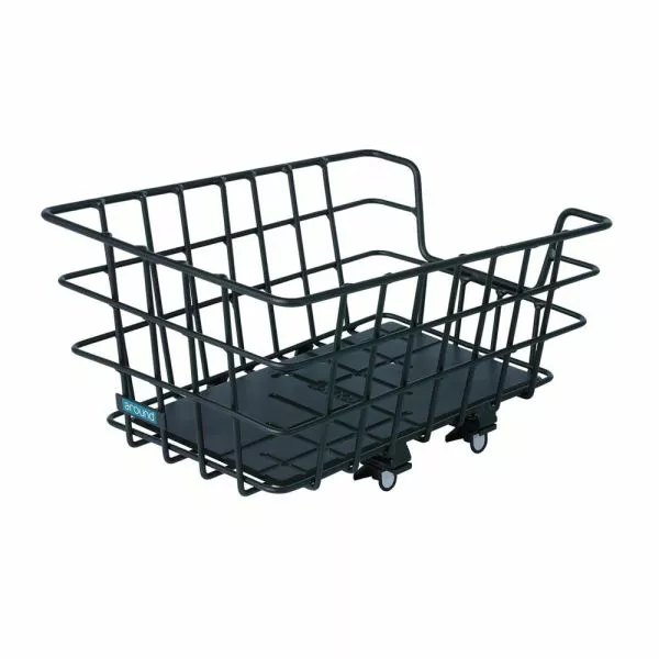 Baghjulskurv College – 100% egnet til elcykler – montering i kørselsretningen – velegnet til transport af skoletasker – fast montering, fixsystem – kan monteres uden ekstra adapterplade – rustfri – robust design – med praktisk designbund – bredmasket – materiale: Aluminium.