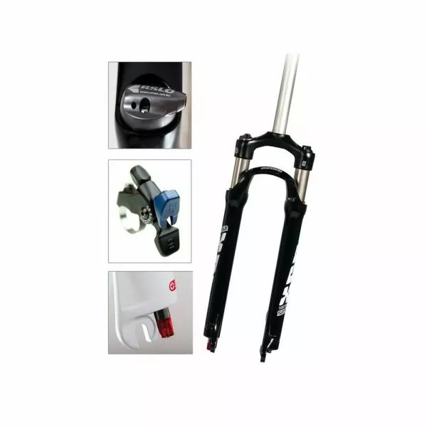 SF14-XCR32-RL Fjederhastighed: spiralfjedreDæmpning: olieAffjedringens vandring 100mm eller 120mm justerbarDiprør: magnesium 130mm bredeStandrør: STKM ø 32mmGaffelkrone: AC4C Skaft: STKM 255mm AheadJustering: forspænding/blokering via styrkontakt (inkluderet)Bremsetype: postmount (PM)Vægt: ca. 2200g
