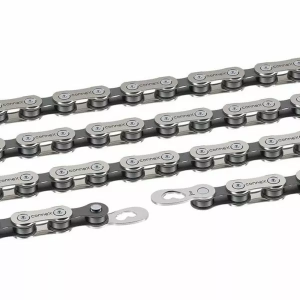 CONNEX kæde SB-pakket, 1 / 2″ x 3 / 32″, til 6- / 7- / 8-speed derailleurs Den specielle ydre plade garanterer stille og præcis skiftning. Topmodellen 8sX opnår op til 40 % længere levetid med indre led i rustfrit stål. PinLængde: 7,2 mm, 308 g